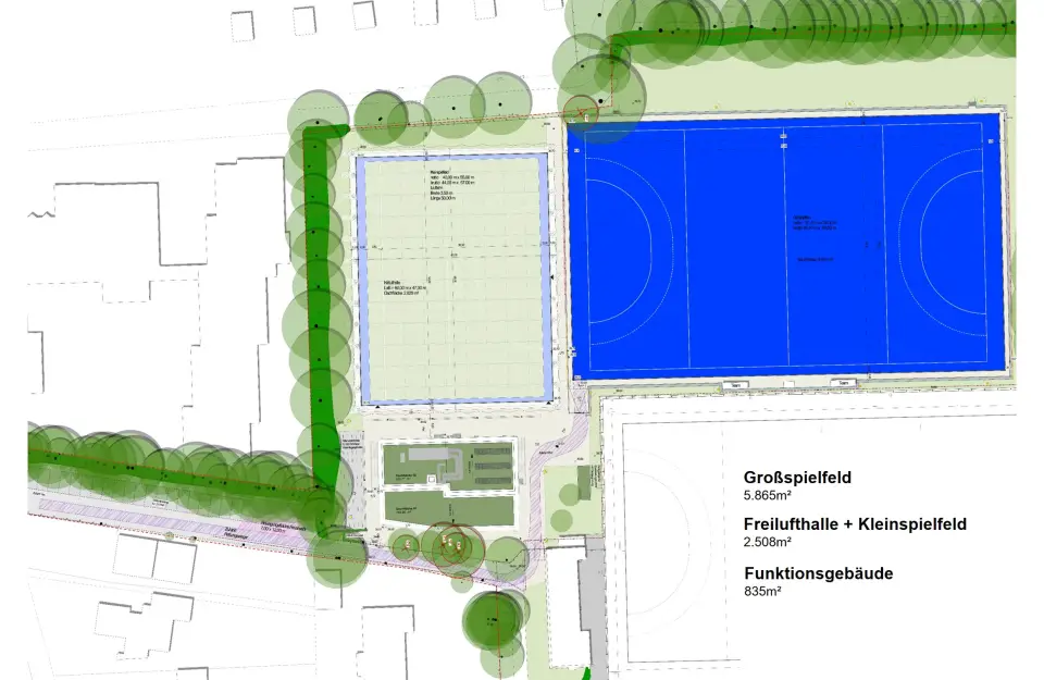 Hinzu kommt, dass die neue Anlage die höchsten Standards des Klimaschutzes erfüllt: Mit einer Photovoltaik-Anlage, einem begrünten Dach und in Teilbereichen eine Holzfassade, sowie teilweise eine begrünte Fassade. Aus einem bereits vorhandenen Brunnen wird Wasser zur Bewässerung und Reinigung des Platzes verwendet. Später wird dieses Wasser wieder dem nahegelegenen Ziegelteich zugeführt.