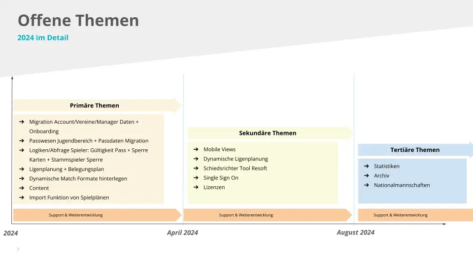 Aktuell bauen wir noch das Thema Spielgemeinschaften ein, welches bei der Ausrollung mit den Landesverbänden eine hohe Wichtigkeit erhalten hat, da dies häufiger vorkommt als bisher angenommen. Dies ist nur ein Beispiel für die Richtigkeit des gewählten Vorgehensmodells, Schritt für Schritt von den Kernfunktionalitäten alle weiteren relevanten und von den Nutzern geforderten Funktionen einzubauen.