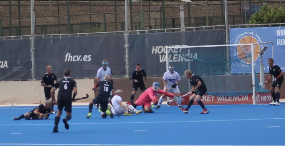 Das Tor zum Halbfinale wird wieder aufgestoßen! Im dritten Spiel während der EM gelingt der M35 ein 3:2 Sieg gegen Frankreich. Das Team beginnt deutlich engagierter als in den ersten beiden Spielen und kommt auch zu Chancen, weiß diese aber noch nicht in Tore zu verwandeln. Stattdessen geht Frankreich mit ihrer ersten kurzen Ecke sogar 1:0 in Führung. Drei Minuten später gelingt Fabian Posselt aber ebenfalls per Ecke der verdiente Ausgleich zum 1:1. Im zweiten Viertel hat das deutsche Team dann wieder leichte Vorteile und geht durch Manuel Krischker mit 2:1 in Führung. Auch nach der Halbzeitpause bleibt es bei der deutschen Überlegenheit, bis Frankreich bei einem gelungenen Konter den überraschenden Ausgleich erzielt. Die Entscheidung fällt dann im letzten Viertel. Kapitän Malte Pingel gelingt mit einem verwandelten 7-Meter der Führungstreffer zum 3:2. Frankreich reagiert sieben Minuten vor Spielende mit der Auswechslung ihres Torwarts zugunsten eines weiteren Feldspielers und drückt jetzt auf den Ausgleich. Auch auf Grund der Schiedsrichter kommt es zu drei Ecken für den Gegner, die letzte wird Sekunden vor dem Ende des Spiels verhängt. Mit Können und Glück wird aber auch diese Ecke abgewehrt und der Sieg ins Ziel gerettet. Mit Platz 3 im Moment besteht wieder die Möglichkeit aus eigenem Vermögen das Halbfinale zu erreichen.