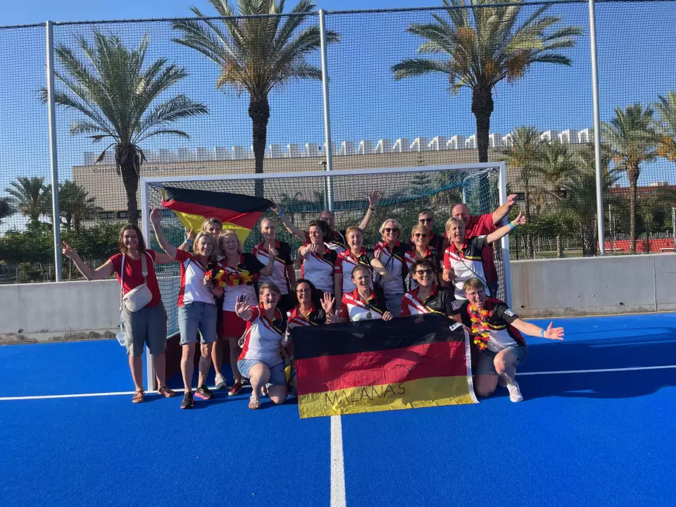 Nach den beiden sehr knappen Auftaktniederlagen gegen Schottland und Holland kamen die Malanas im Laufe des Turniers immer besser in Fahrt. Dem Kantersieg gegen das Alliance-Team (9:1) folgte ein souveräner 4:0-Sieg kurz nach dem Sonnenaufgang gegen die Französinnen. Ganz kurz keimte noch die Hoffnung auf den 2.Gruppenplatz auf, da die Holländerinnen sich in ihrem letzten Gruppenspiel gegen Alliance sehr schwertaten und erst in der 57. und 60. Minute die beiden Siegtreffer erzielten. Leider reichten den Malanas 55 die erzielten sechs Punkte nur für den dritten Platz in der Gruppe und damit für das Spiel um Platz 5 gegen Wales. Dies gewannen die W55er, die erneut von Interimscoach Lars Brenneke (M55-Spieler) betreut wurden, am Samstag um 16 Uhr bei sengender Hitze 1:0 (Linda Ungeheuer durch 7-Meter).