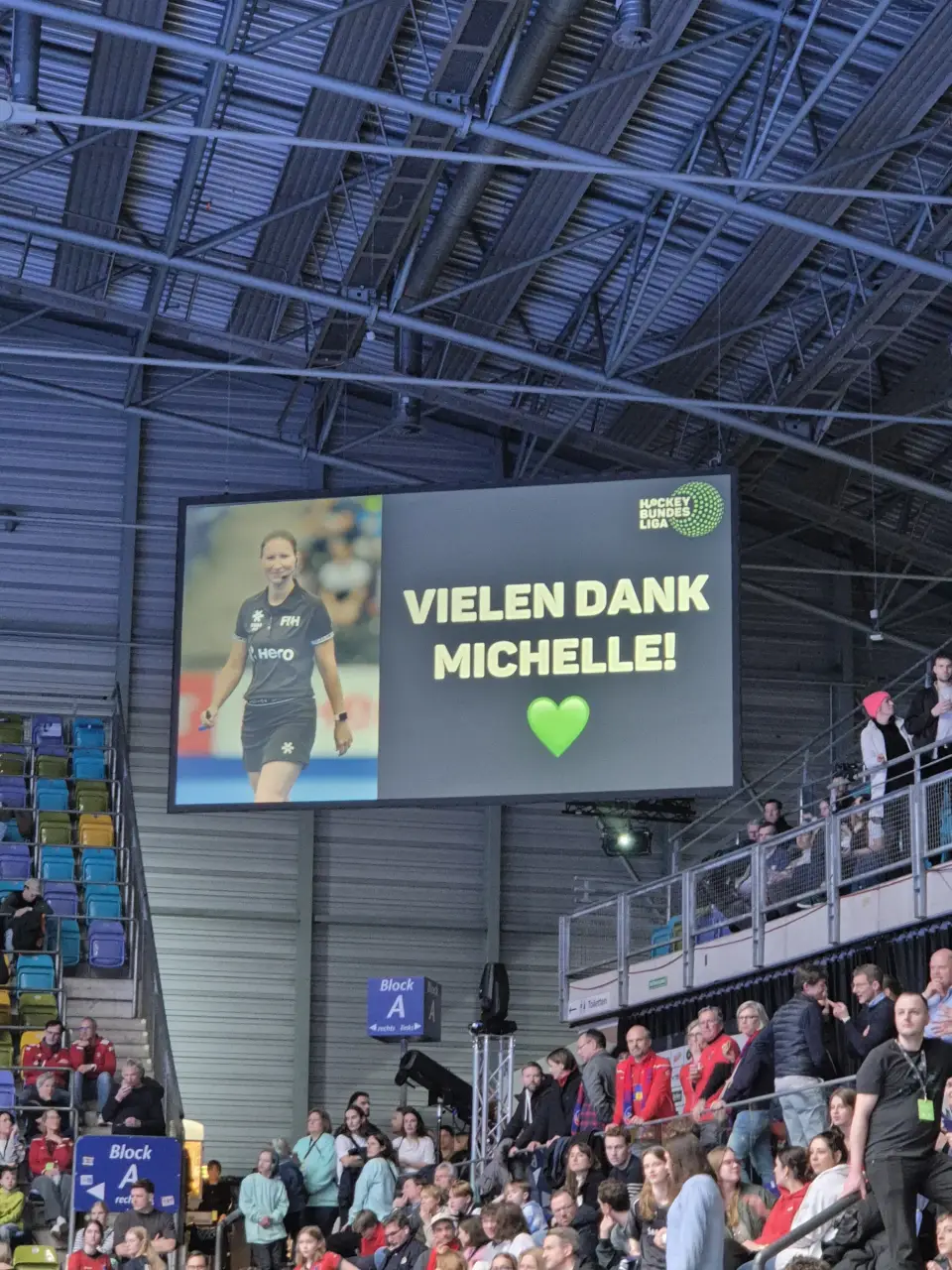 Der Deutsche Hockey Bund / Schiedsrichter und Regelausschuss verabschiedete im Rahmen des E.R.B. Volvo Final4 in Frankfurt seine erfolgreichste Schiedsrichterin der letzten 15 Jahre, Michelle Meister, nach 403 Bundesligaspielen in den nationalen Schiedsrichter Ruhestand. Bei der Verabschiedung waren neben Vertretern vom DHB-Präsidium und der Hockeybundesliga auch viele aktuelle und ehemalige Schiedsrichter nach Frankfurt angereist.