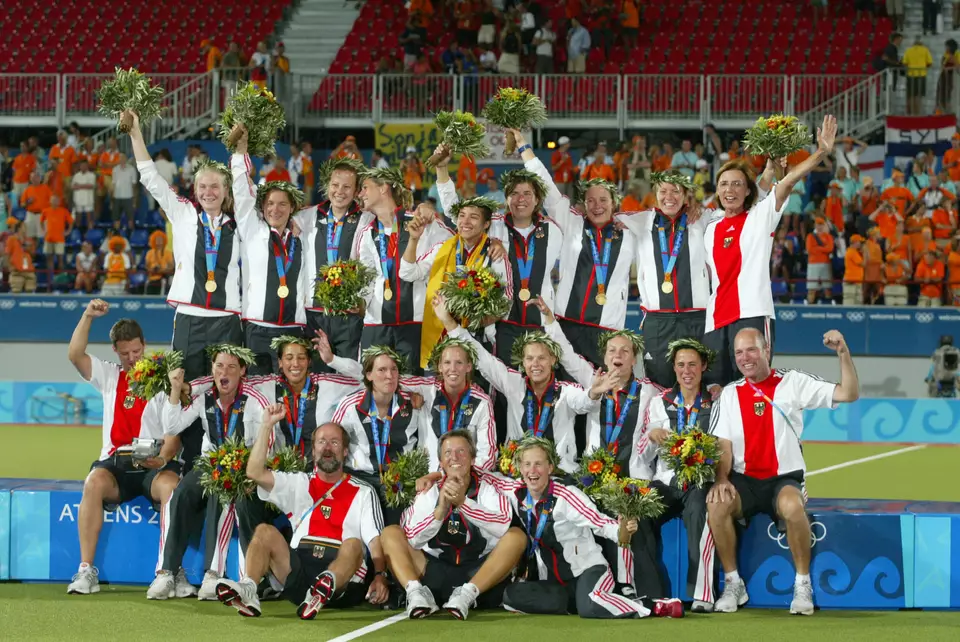 Eine Achterbahnfahrt der Gefühle bescherten die DHB-Damen Hockey-Deutschland in Athen 2004. In der Vorrunde schon so gut wie ausgeschieden, zog das Team - von Bundestrainer Markus Weise als "die Wundertüten" betitelt - durch ein 3:2 über Korea und Dank niederländischer Schützenhilfe ins Halbfinale ein. Dort wurde China nach Abwehrschlacht in der Verlängerung geschlagen. Und gegen die in der Vorrunde noch 4:1 siegreichen Holländerinnen wurde dann im Endspiel so grandios verteidigt, das am Ende die erste Goldmedaille für ein deutsches Damenteam zu Buche stand.