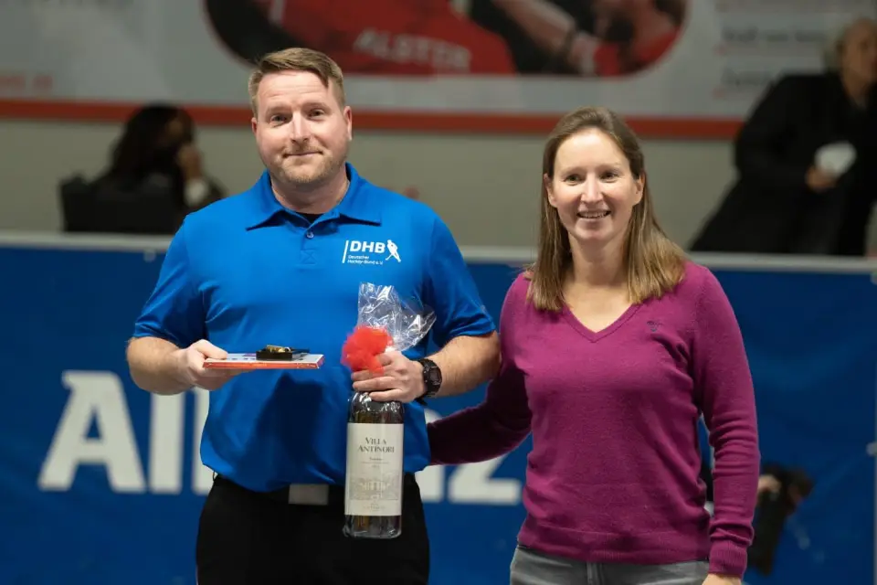Einen Tag nachdem Frank Lubrich als erster deutscher Schiedsrichter die Marke von 600 Bundesligaspielen durchbrochen hat, konnte auch René Pleißner in Hamburg beim Spiel der Alster-Herren gegen den HTHC ein Jubiläum feiern. SRA-Mitglied Michelle Meister ehrte den 42-Jährigen Potsdamer für sein 450. Bundesligaspiel in 20 Jahren. Für sechs deutsche Endrunden wurde Renè zudem in den letzten fünf Jahren nominiert. Herzlichen Glückwunsch!