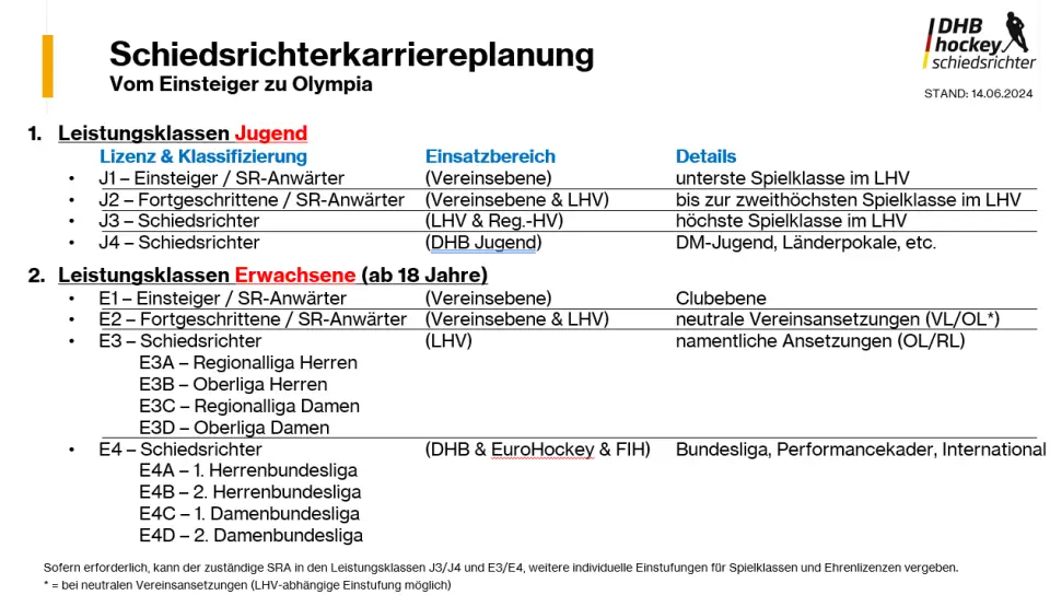 Der Schiedsrichter- und Regelausschuss des Deutschen Hockey-Bundes e.V. hat mit dem Aufbau der digitalen Lernplattform "RefStart" auch das Lizenzystem der Landesverbände und der DHB vereinheitlicht. Die aktuelle Version kann unter u.g. Link runtergeladen und eingesehen werden.