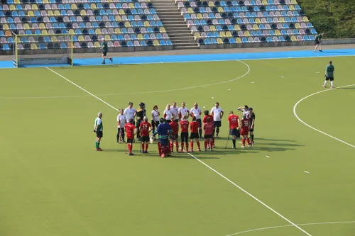 Das Abschlussspiel des Festivalturniers unter Leitung der extra angereisten WHV-Schiedsrichter Prominenz Hans-Werner Sartory und Wolfgang Bettray fand zwischen dem Team „Riesling Trocken“ vom Dürkheimer HC und den „Stockhaklern“ vom Crefelder SV aus statt. Ein denkbar knappes 3:2 brachte den Dürkheimern die „Alleskönner“ Trophäe.